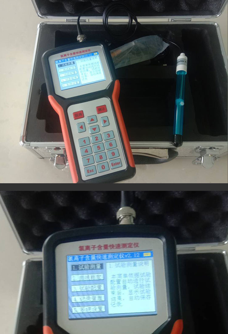 外加劑等水溶性物質(zhì)的氯離子含量。直接輸出摩爾濃度和質(zhì)量百分?jǐn)?shù)。內(nèi)置溫度補(bǔ)償程序。