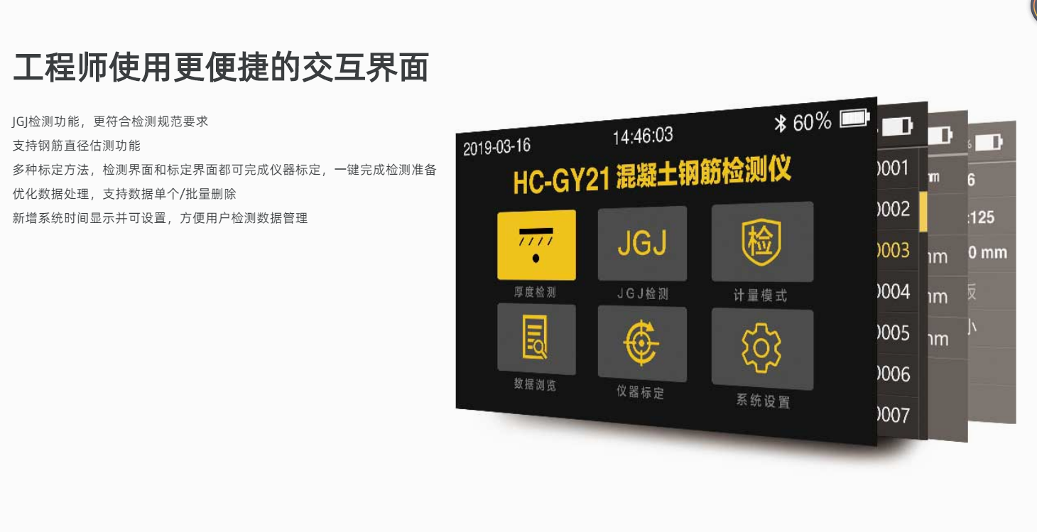 HC-GY21 混凝土鋼筋檢測(cè)儀 主要用于混凝土結(jié)構(gòu)工程中鋼筋位置、鋼筋分布及走向、保護(hù)層厚度、鋼筋直徑的探測(cè)