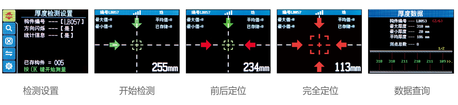 ¢ 實時顯示測量數(shù)值,自動鎖定真實厚度;